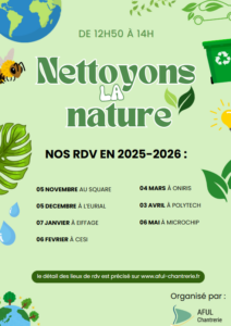 Faire ensemble pour que notre environnement reste propre et agréable à vivre ! L’AFUL Chantrerie vous invite à son évènement « Nettoyons la nature », le mardi 02 mai 2023 au CESI (1 Av. Augustin-Louis Cauchy, 44307 Nantes) !